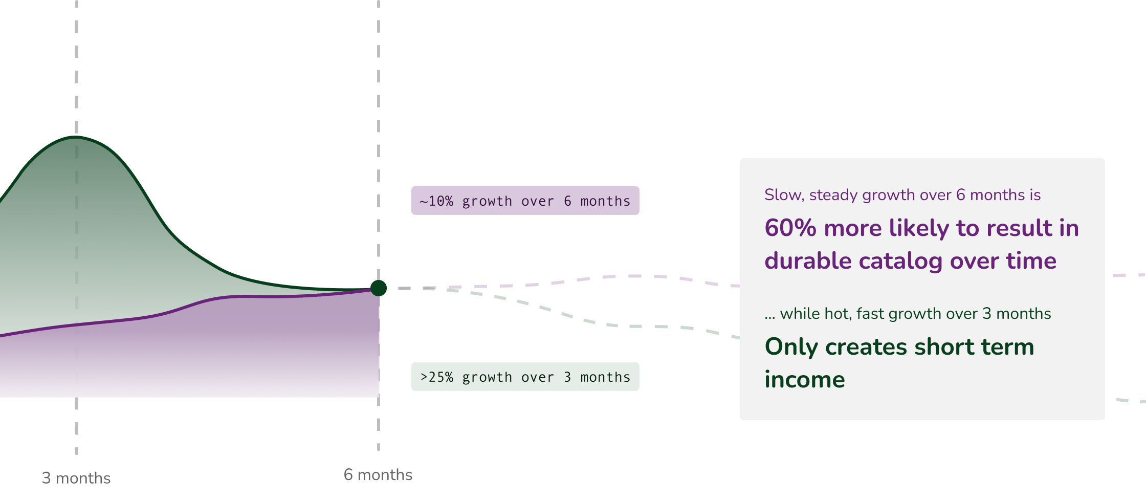Slow, steady growth over 6 months is 60% more likely to result in durable catalog over time